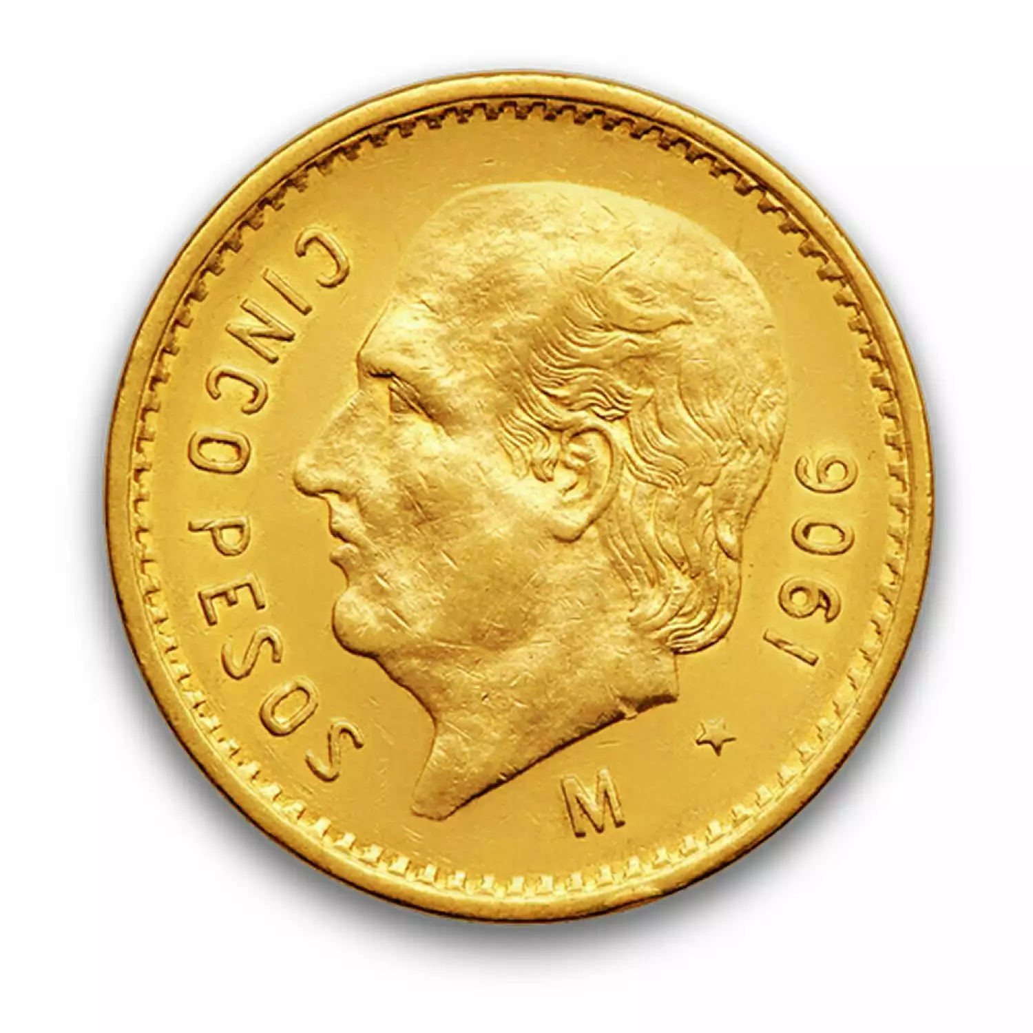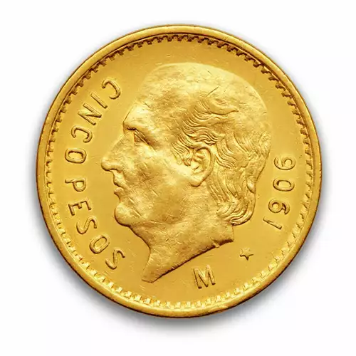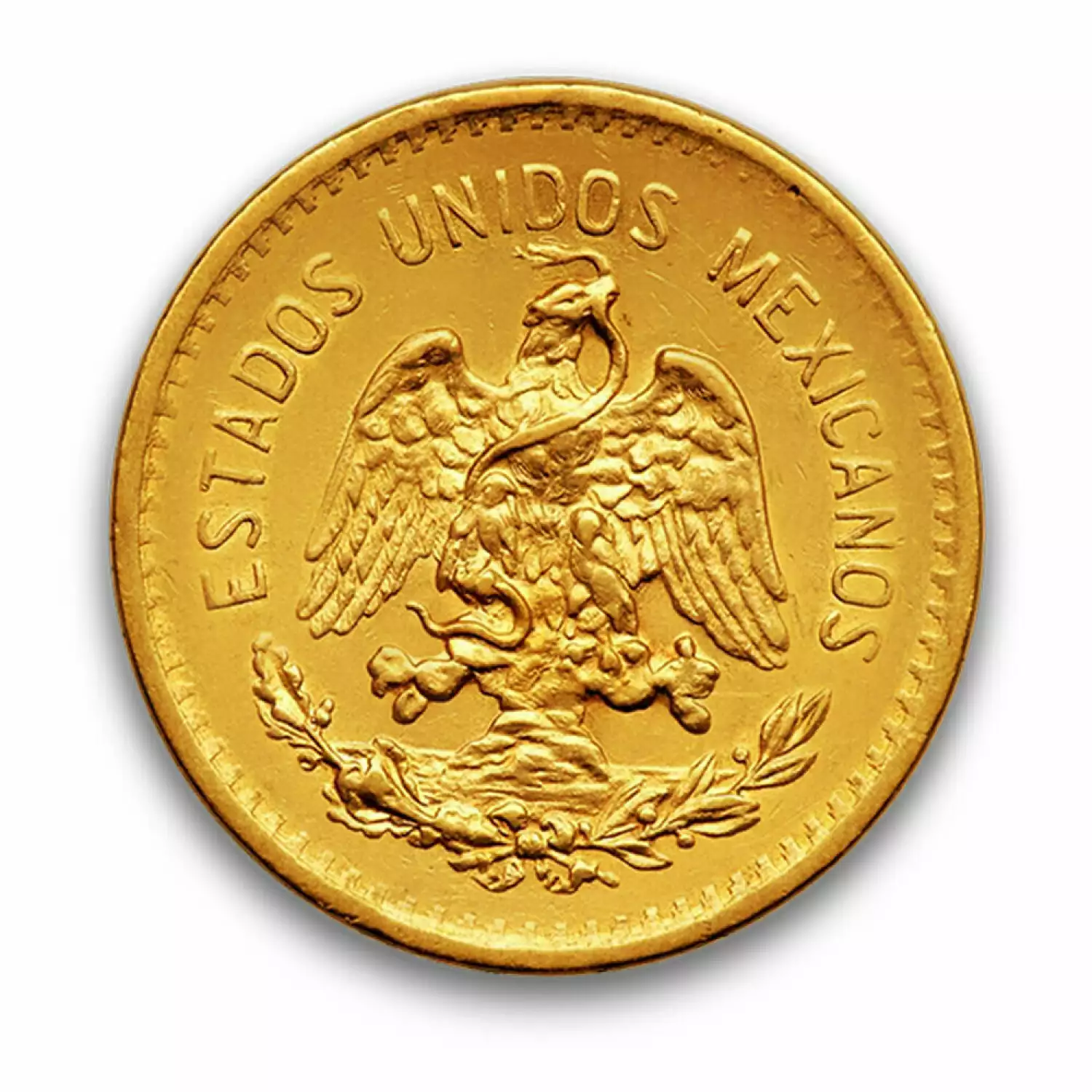 The Peso is an iconic piece of Mexico's currency. Mexico Peso Gold Coins are available in 6 different denominations- 2 Gold Pesos, 2 1/2 Gold Pesos, 5 Gold Pesos, 10 Gold Pesos, 20 Gold Pesos, and 50 Gold Pesos. Mexico 5 Peso Gold Coins are produced by the Mexican Mint.