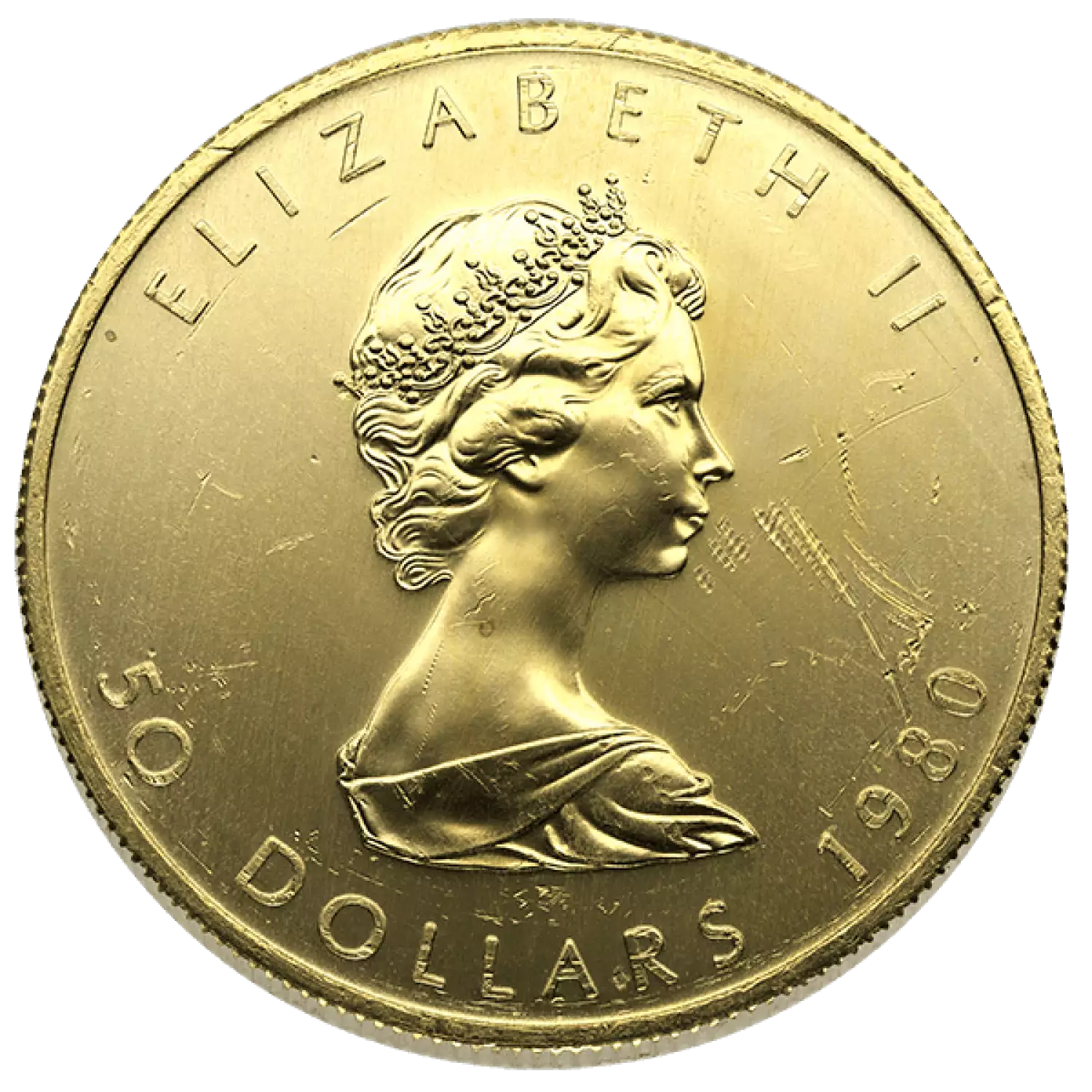 These 1 ounce Canadian gold coins have minor abrasions and scratches on the surface. The Canadian Gold Maple Leaf is the official bullion gold coin of Canada, and is produced by the Royal Canadian Mint (RCM). The brainchild of Walter Ott, it is one of the purest gold regular-issue coins in the world with a gold content of .9999 fineness (24 carats), with some special issues .99999 fine.