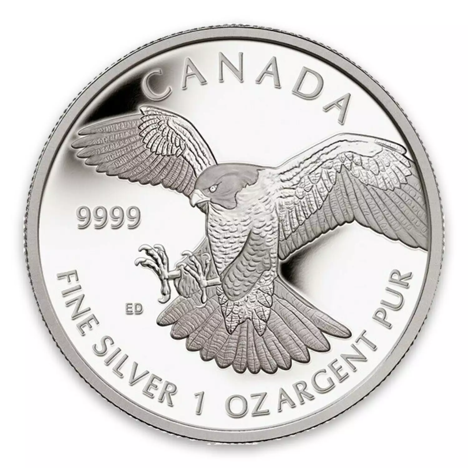 The 2014 1 oz Birds of Prey Silver Series - Bald Eagle contains 1 oz of .9999 fine Silver and has a face value of 5$ (CAD).