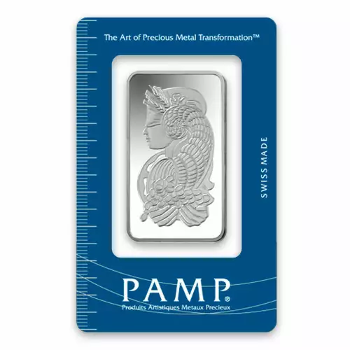 Minted by PAMP Suisse, PAMP Silver Bars are popular among investors and collectors for their pure silver content, high-quality minting and liquidity. These high-quality silver bars showcase the beautiful Fortuna design.
