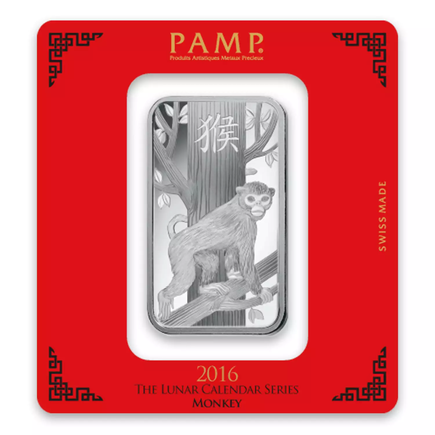 Buy the high-quality 100g PAMP Silver Bar - Lunar Monkey today from us online! You’ll find the recent silver price on our website.