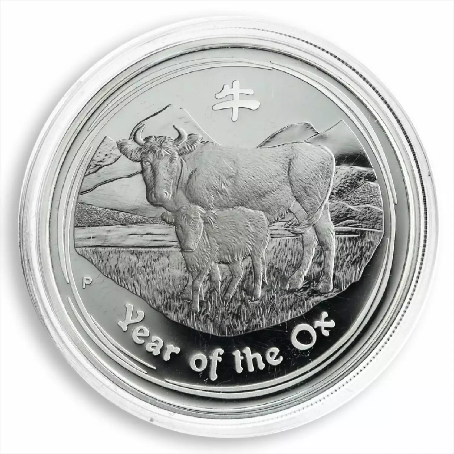 The 2009 1oz Australian Perth Mint Silver Lunar II: Year of the Ox celebrates the Year of the Ox.