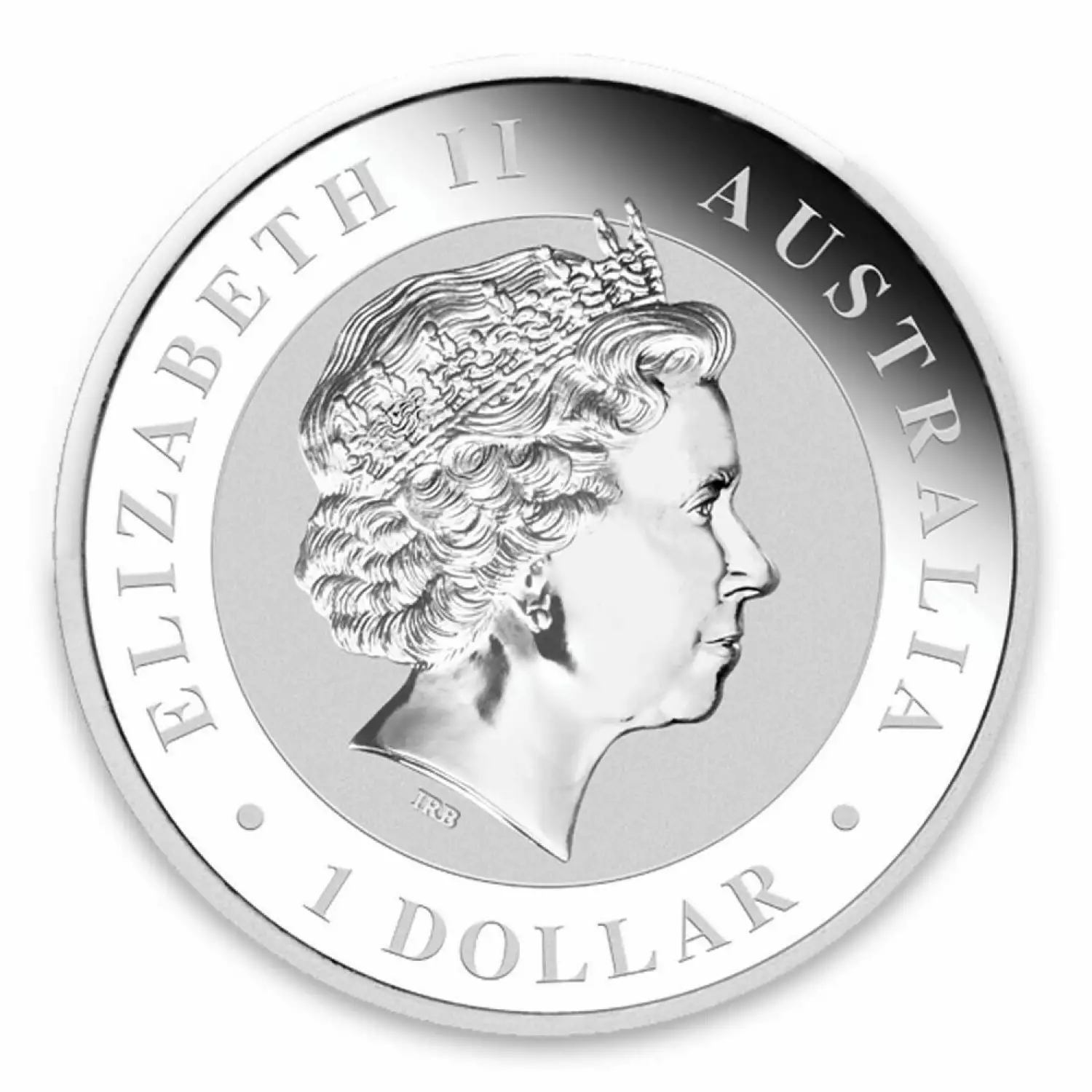 The reverse of the coin features two juvenile kookaburras sitting on a tree branch amid flowers, designed by Natasha Muhl. A larger silver coin tends to have a lower premium per troy ounce when purchasing given the relatively fixed cost of production being absorbed into a much larger silver coin.