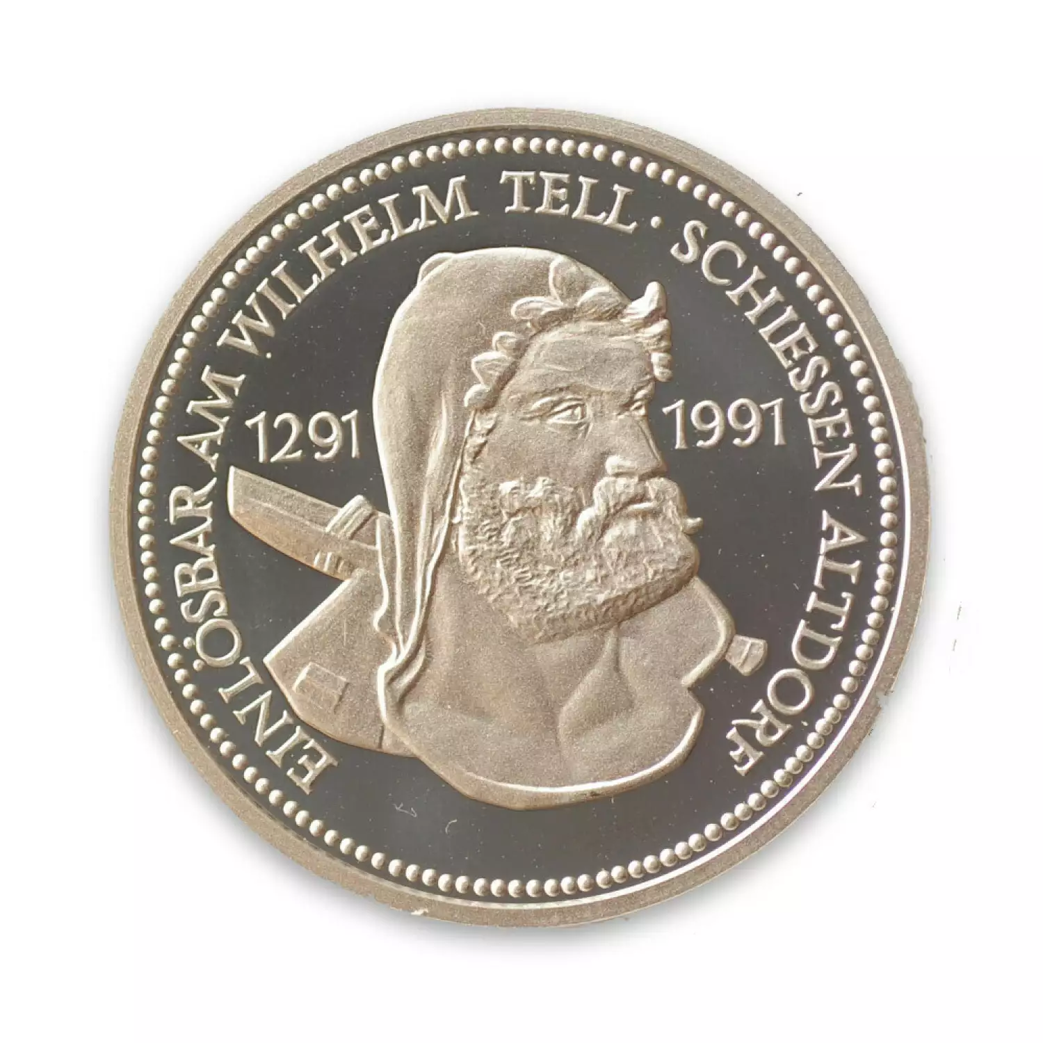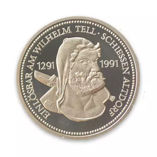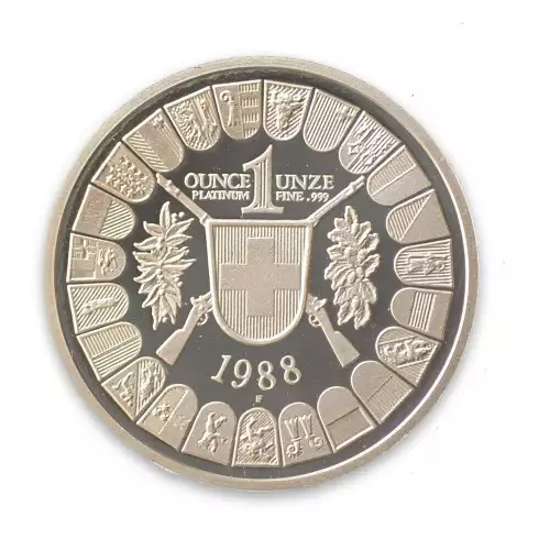 - Legendary figure of William Tell holding a crossbow with his son at his side surrounded on the 1986 Platinum coin or a close up bust of William Tell on the 1988 is on one side of the coin
