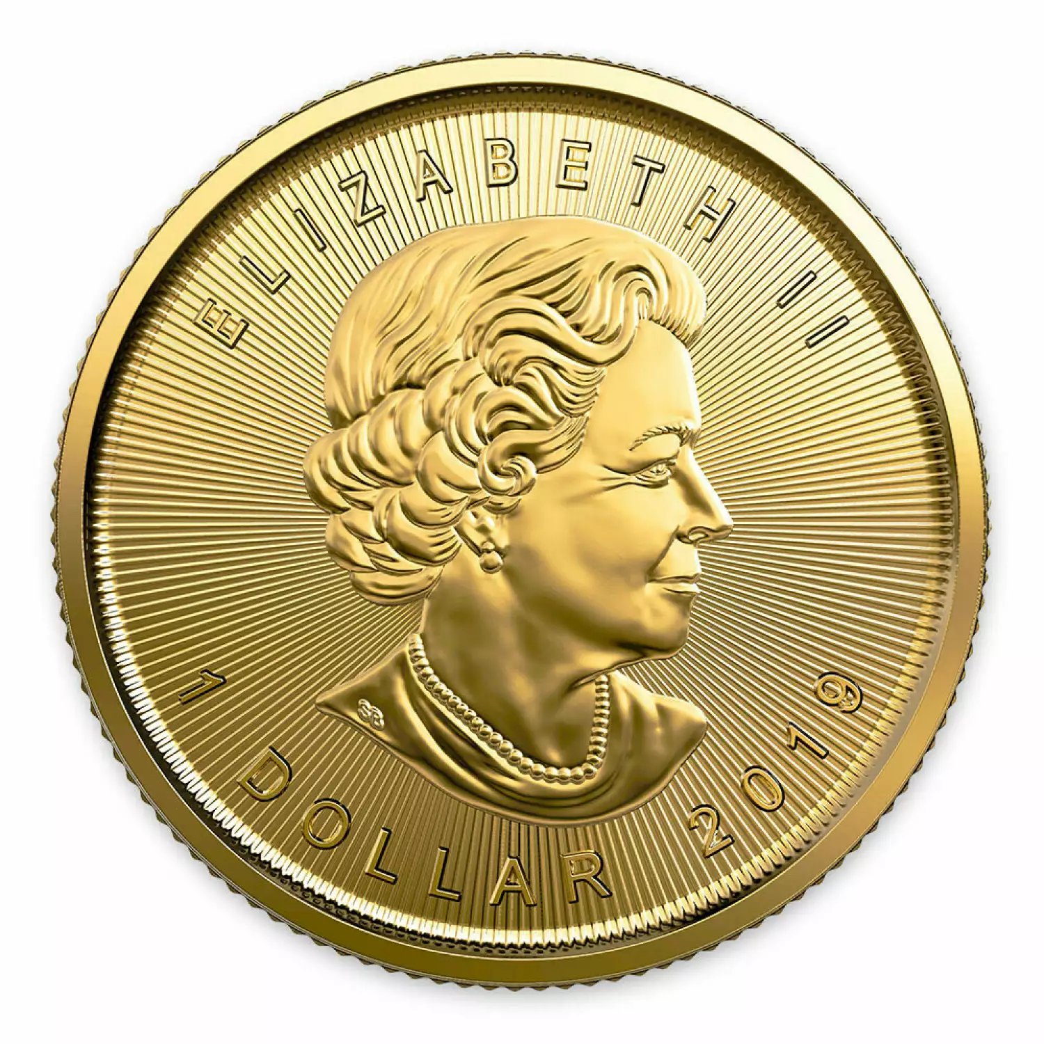 First introduced by the Royal Canadian Mint in 1979, The Canadian Gold Maple Leaf is one of the most diverse, popular bullion coins worldwide. The 2019 1/20 oz Canadian Gold Maple Leaf is the newest edition. This coin is highly popular among investors and collectors for its excellence and stunning design.