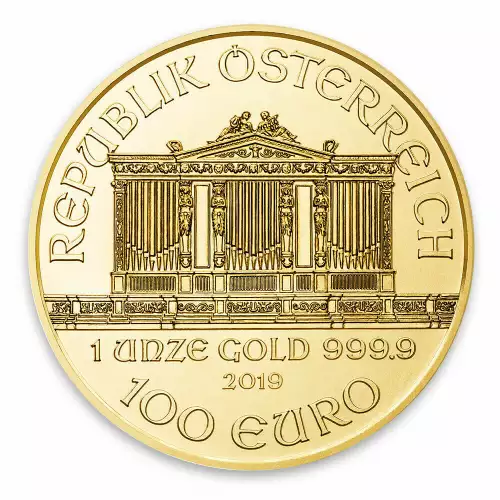 The Austrian Gold Philharmonic coins are manufactured as a tribute to the renowned Vienna Philharmonic Orchestra. This series of gold coin is highly popular among investors and collectors. The 1 oz Austrian Gold Philharmonic coin contains 1 oz of gold. The Reverse of the coin features an array of instruments, including the cello, violin, harp, Vienna horn and bassoon.