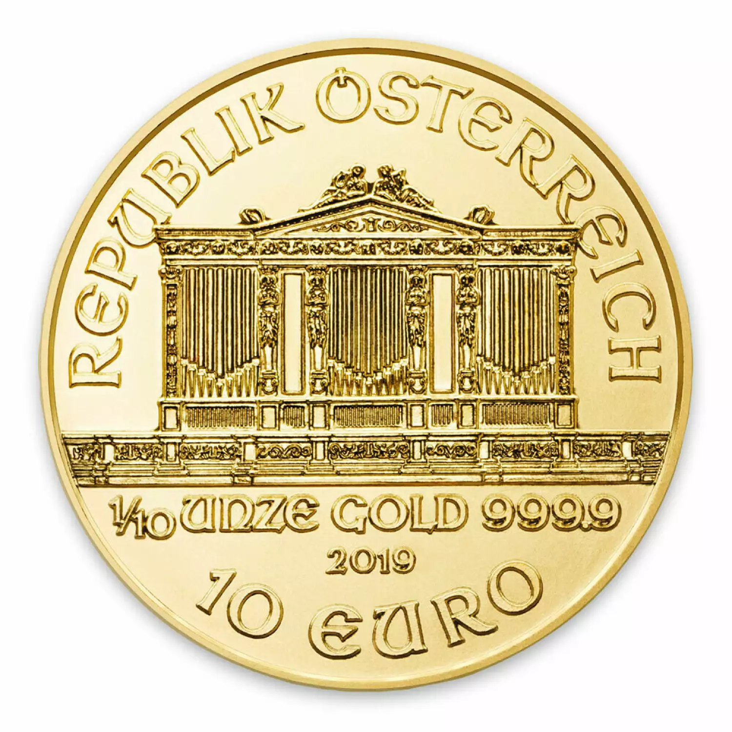 Thinking about buying gold coins from one of the reputable bullion dealers? Buy high-quality 2019 1/10 oz Austrian Gold Philharmonic online today! You can check the current gold coin price on our website.