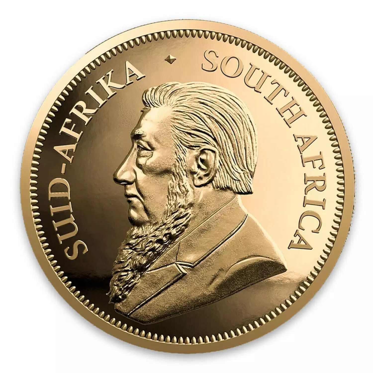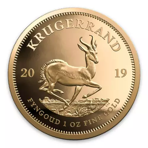 The Gold Krugerrand coin has gained extreme popularity since first incepted in 1967. Each 2019 1 oz South African Gold Krugerrand is composed of 1 troy ounce of .9999 fine gold. The obverse of the 2019 1oz South African Gold Krugerrand features the South African Republic’s first president, Paul Kruger. The reverse of the gold coin depicts South Africa’s symbol, the Springbok Gazelle.This gold coin has an iconic design desired by many gold investors.