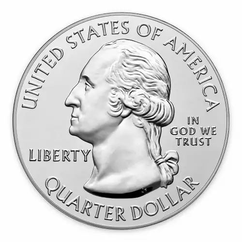 The obverse carries the familiar coin portrait of George Washington - the portrait featured on current Washington quarter
