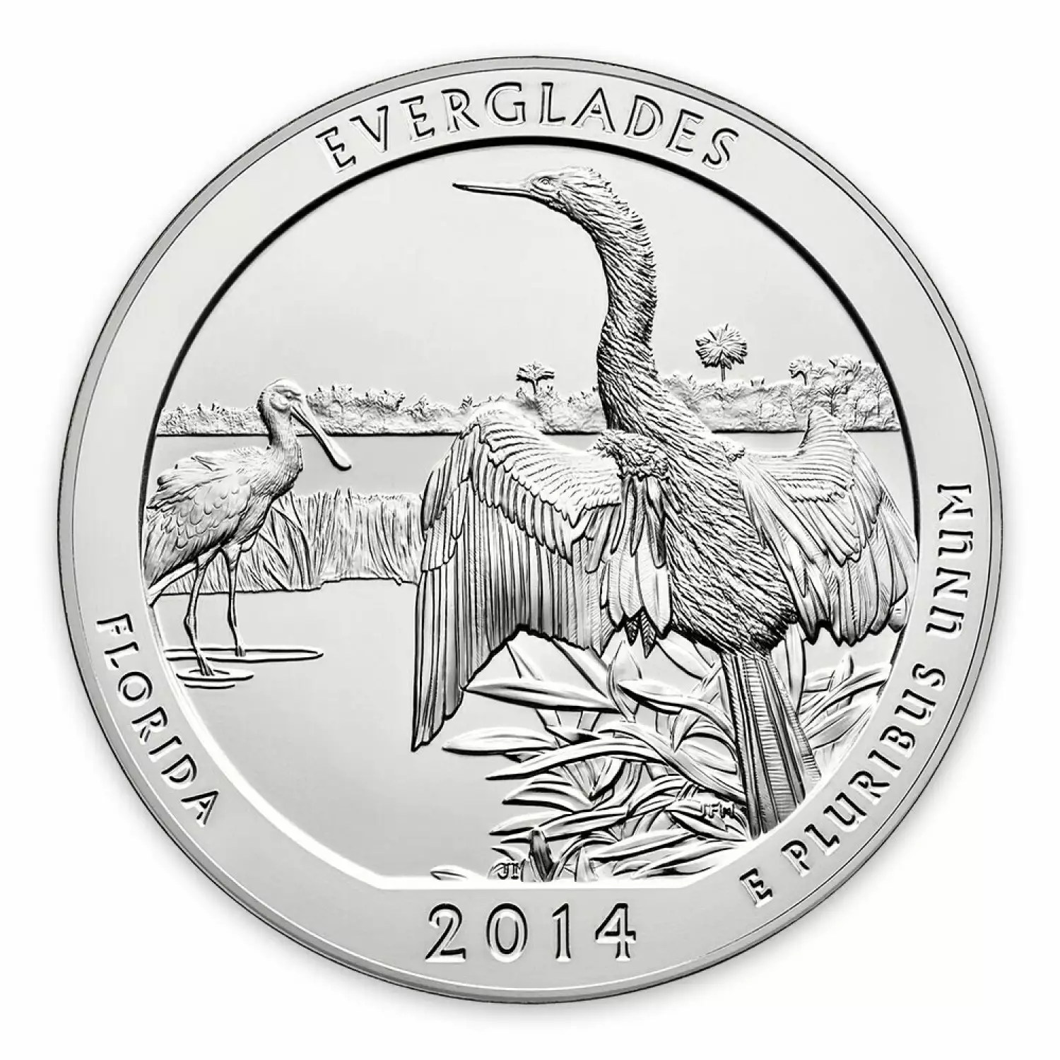 Since 2010, the US Mint released five silver America the Beautiful coins annually. The 5oz silver coins will be complete in 2021, each representing a historical monument or a treasured national park. These bullion coins were introduced following the success of the state quarter program.Everglades National Park is an American national park that protects the southern twenty percent of the original Everglades in Florida. The park is the largest tropical wilderness in the United States, and the largest wilderness of any kind east of the Mississippi River.