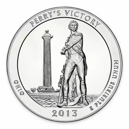 Since 2010, the US Mint released five silver America the Beautiful coins annually. The 5oz silver coins will be complete in 2021, each representing a historical monument or a treasured national park. These bullion coins were introduced following the success of the state quarter program.Perry's Victory and International Peace Memorial commemorates the Battle of Lake Erie that took place near Ohio's South Bass Island, in which Commodore Oliver Hazard Perry led a fleet to victory in one of the most significant naval battles to occur in the War of 1812.