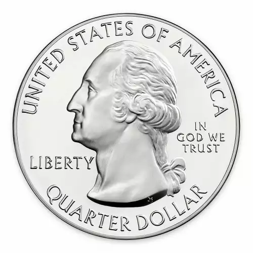 The obverse carries the familiar coin portrait of George Washington - the portrait featured on current Washington quarter