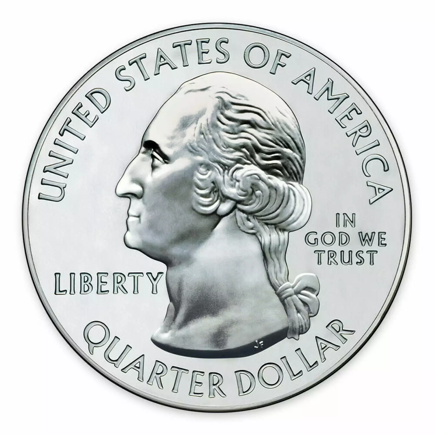 The obverse carries the familiar coin portrait of George Washington - the portrait featured on current Washington quarter