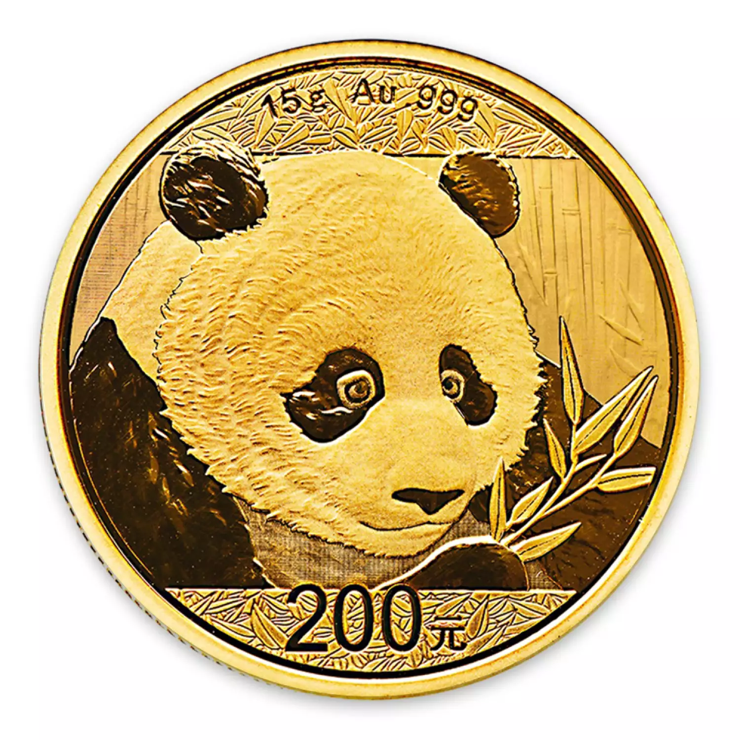 The 2018 Chinese Gold Panda coin is minted as .999 fine gold, 24 karat. The Chinese Gold Panda Coins differ from most other common gold bullion in two ways. First, the reverse design of the endangered panda bear changes annually (except for 2001 and 2002 which feature the same design) and second, each coin is minted as a limited edition. First minted in 1982, the Chinese Gold Panda Bullion Coin was greeted with great interest among collectors. This interest peaked in 1987 after which lower mint figures resulted in limited availability. The design of the Panda changes each year.