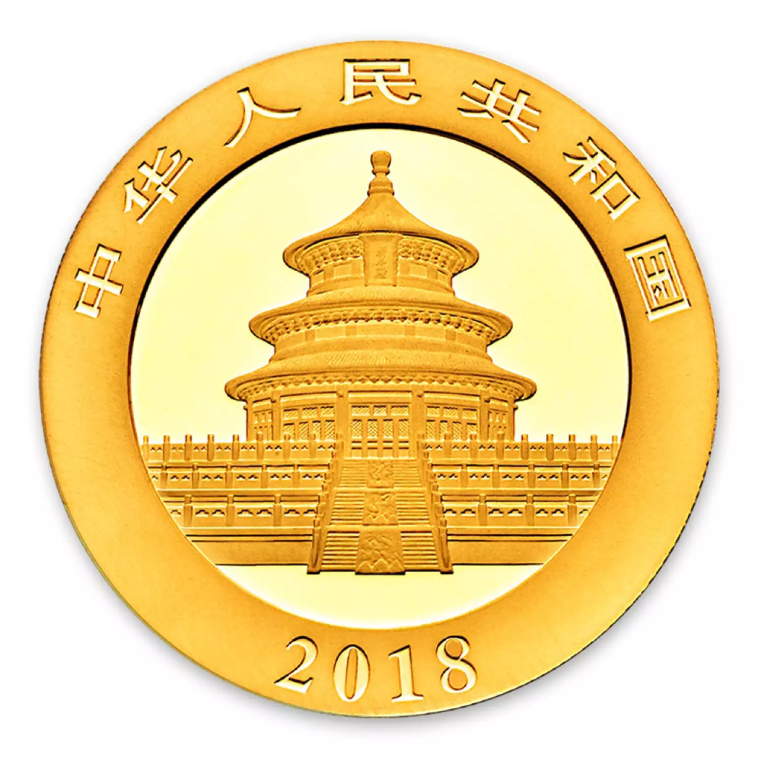 The 2018 Chinese Gold Panda coin is minted as .999 fine gold, 24 karat. The Chinese Gold Panda Coins differ from most other common gold bullion in two ways. First, the reverse design of the endangered panda bear changes annually (except for 2001 and 2002 which feature the same design) and second, each coin is minted as a limited edition. First minted in 1982, the Chinese Gold Panda Bullion Coin was greeted with great interest among collectors. This interest peaked in 1987 after which lower mint figures resulted in limited availability. The design of the Panda changes each year.