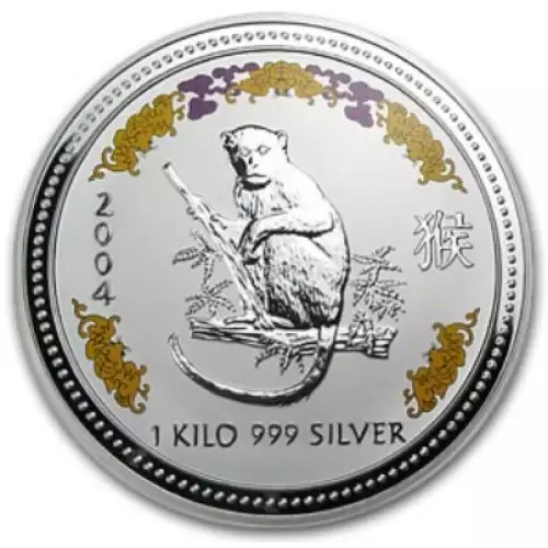 The 2004 1kg Australian Perth Mint Silver Lunar: Year of the Monkey is composed of 1000 grams of .999 fine silver and is backed and guaranteed by the Federal Government of Australia.