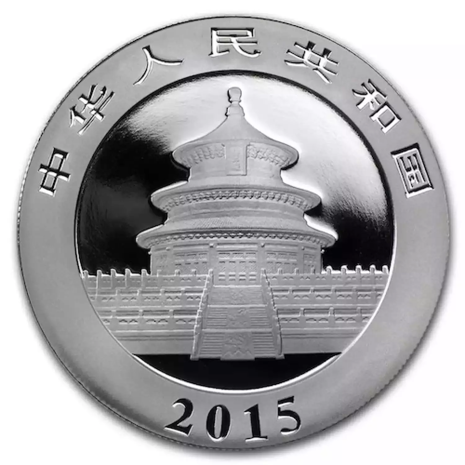 The Chinese Silver Panda Coins are renowned silver bullion coins in the world, produced since 1983 in various denominations, including 1/20 oz, 1/10 oz, 1/4 oz, 1/2 oz, and 1 oz. The 2015 1 oz Chinese Silver Panda coin contains 1 troy ounce of .999 fine silver and has a face value of 10 Yuan. The Obverse of the Chinese fine silver coin features the latest Giant Panda design, and the reverse depicts the Temple of Heaven image.