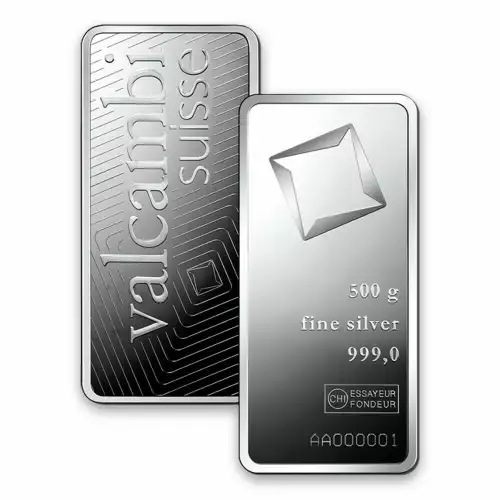 Want to buy a silver bar from one of the genuine bullion dealers? Order the high-quality 500g Valcambi Minted Silver Bar online today from us! The silver bar price is updated on our website every minute.