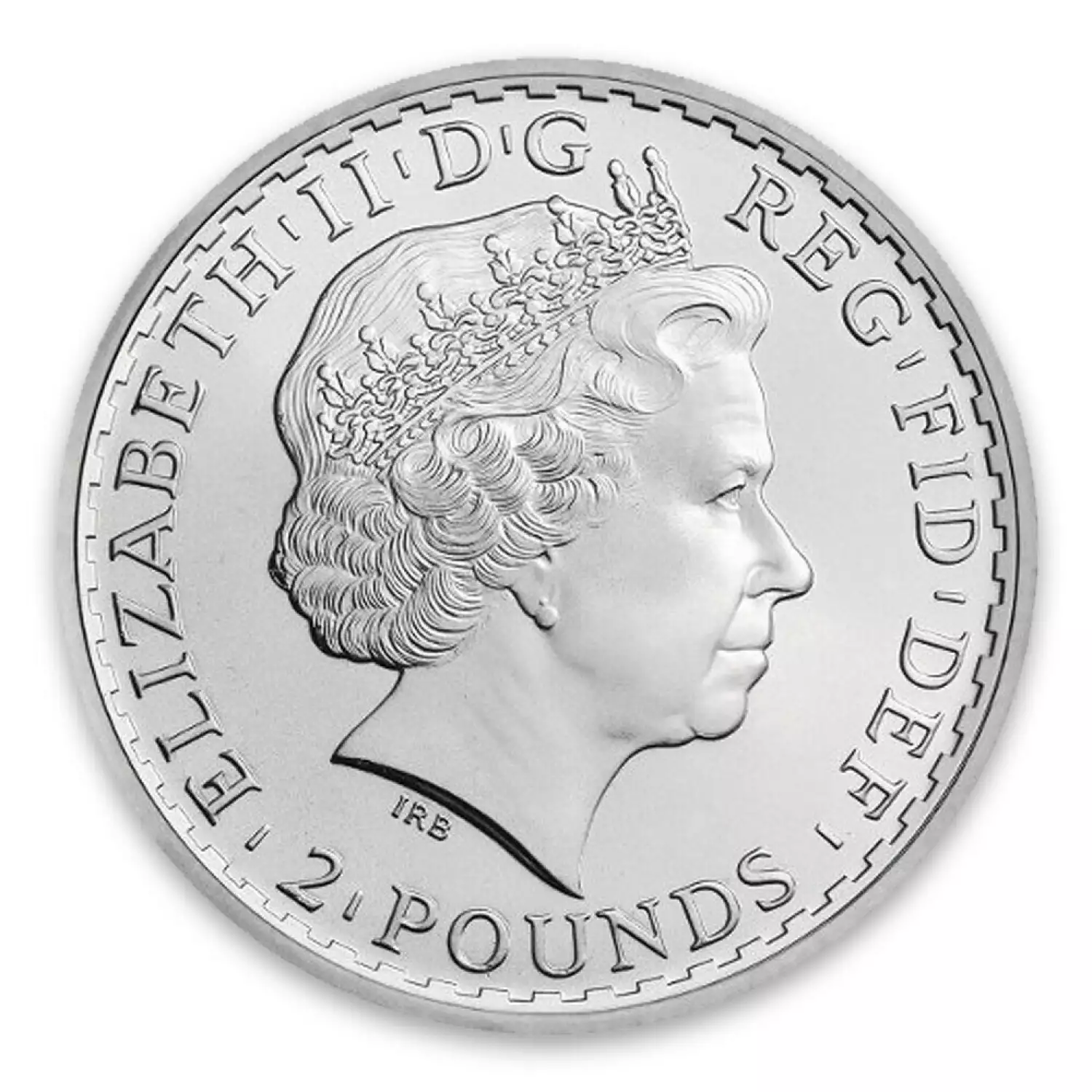 The obverse of the coin features the effigy of Her Majesty Queen Elizabeth II, along with the face value of 2 pounds. The reverse of the silver coin depicts the legendary figure of Britannia holding a trident and shield.