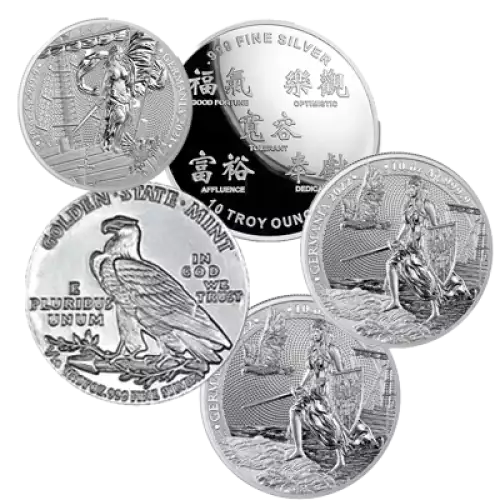 The most popular sizes when you buy silver are 1oz, 10oz, and 100oz. Many other sizes exist, but those silver bar or silver round sizes are not as popular. Generic Silver Rounds are perfect for investors who are looking to expand their precious metals portfolio economically. Each 10 oz Generic Silver Round is composed of 10 troy ounces of .999 fine silver.