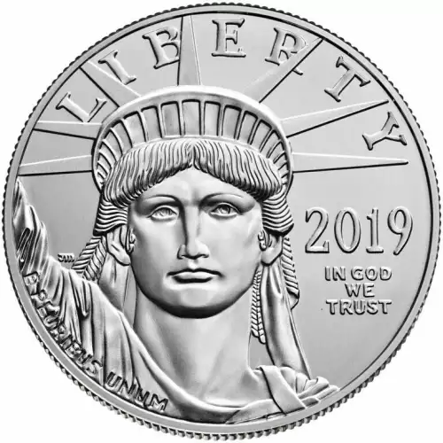 The US Mint has been making the Platinum Eagle for over 20 years. Each 2019 1 oz American Platinum Eagle is struck from the finest 0.9995 purity Platinum weighing 1 troy ounce. The Obverse of the coin portrays Lady Liberty from the neck up in her signature crown. The Reverse of the coin depicts two of the most beloved American icons: the Statue of Liberty and the bald eagle. Platinum is one of the rarest metals as well as one of the most dense metals; even denser than gold.
