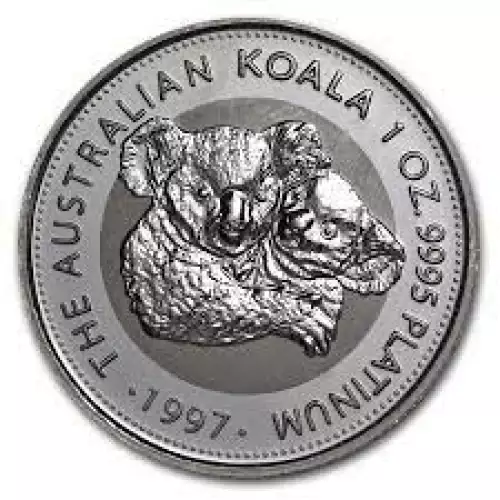 Each 1997 1 oz Australian Perth Mint Platinum Koala Coin contains 1 troy ounce of .9995 fine platinum, with a mintage of just 41,153 coins. This platinum coin is highly popular among investors and collectors for their high-quality minting and pure platinum content.