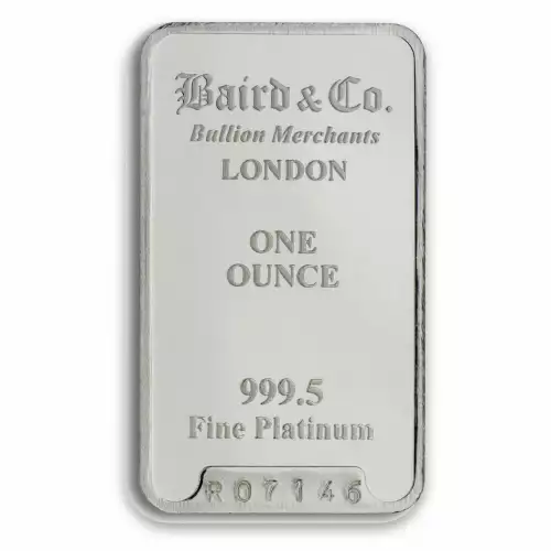 Looking to order a platinum bar from one of the reputable bullion dealers? Buy the high-quality 1oz Baird & Co Platinum Minted Bar online today from us! You can check and compare our reputation and platinum coins prices with other bullion dealers and see how we stand out from the other platinum dealers in the industry. The current platinum bar value is updated on our website every minute.
