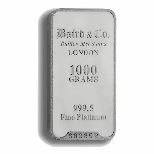 Platinum bars are available in three different types i.e. cast, minted or extruded. Manufactured by Baird & Co in the UK, each 1kg Baird & Co Platinum Minted Bar contains 1 kg of .9995 fine platinum. These stunning platinum bars appeal to both investors and collectors for their iconic designs. Platinum bars and platinum coins may tend to tarnish over time depending upon the environment they are stored.