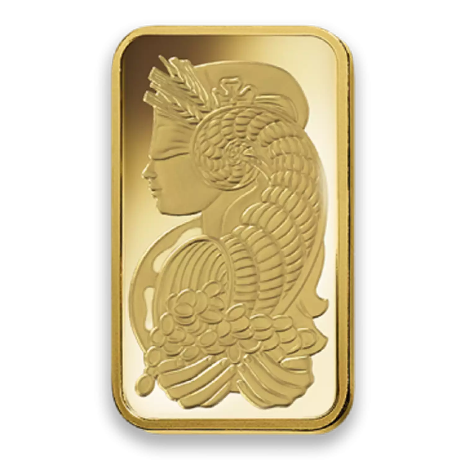PAMP Gold Bars feature the beautiful Fortuna design. Each 5g PAMP Suisse Gold Bar - Fortuna is composed of 5 grams of .9999 fine Gold.