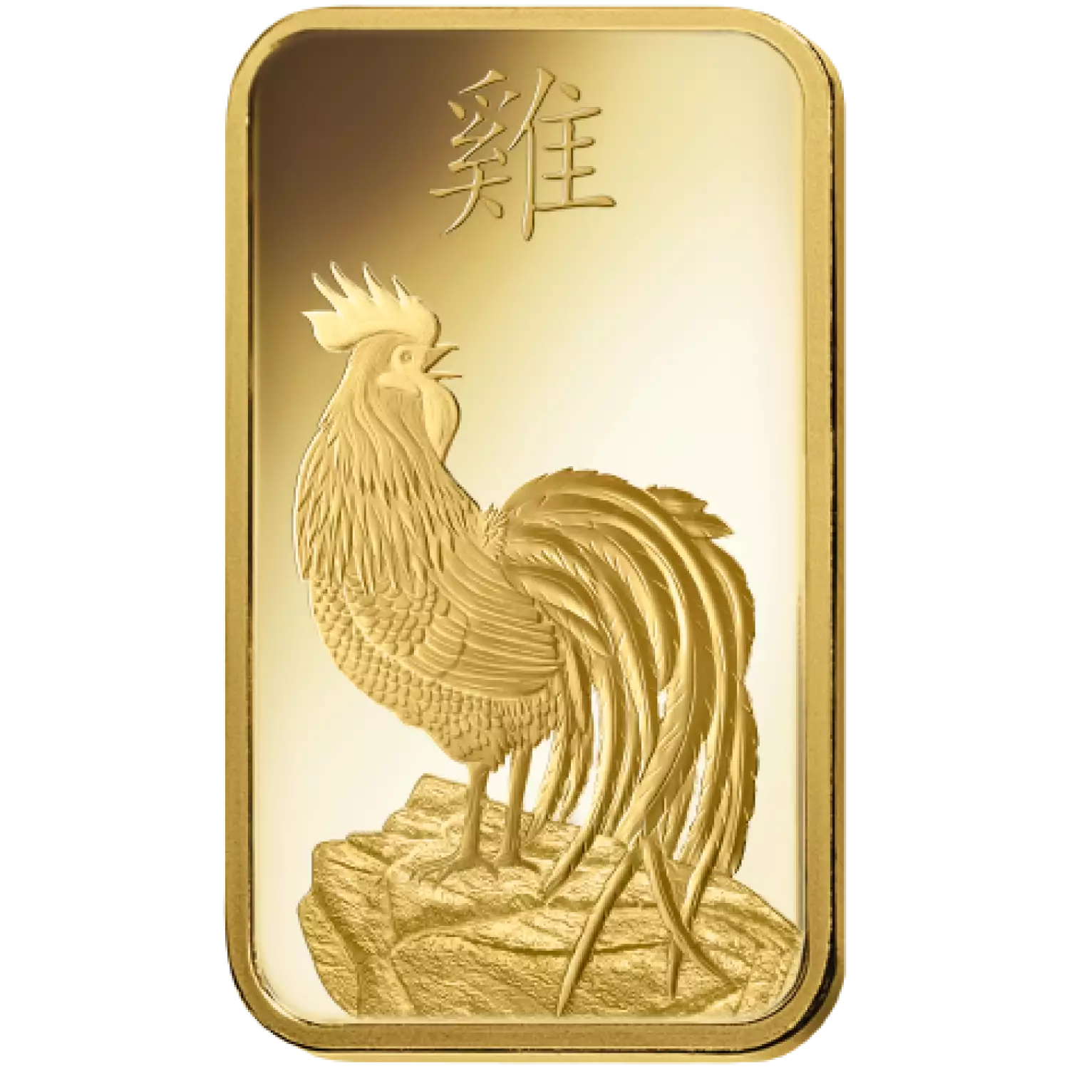 You'll see the image of the left-profile rooster, standing at the edge of the hill, looking over his right shoulder on the Obverse of this gold bar. The Reverse of the gold bar depicts the right-profile image of the Rooster.