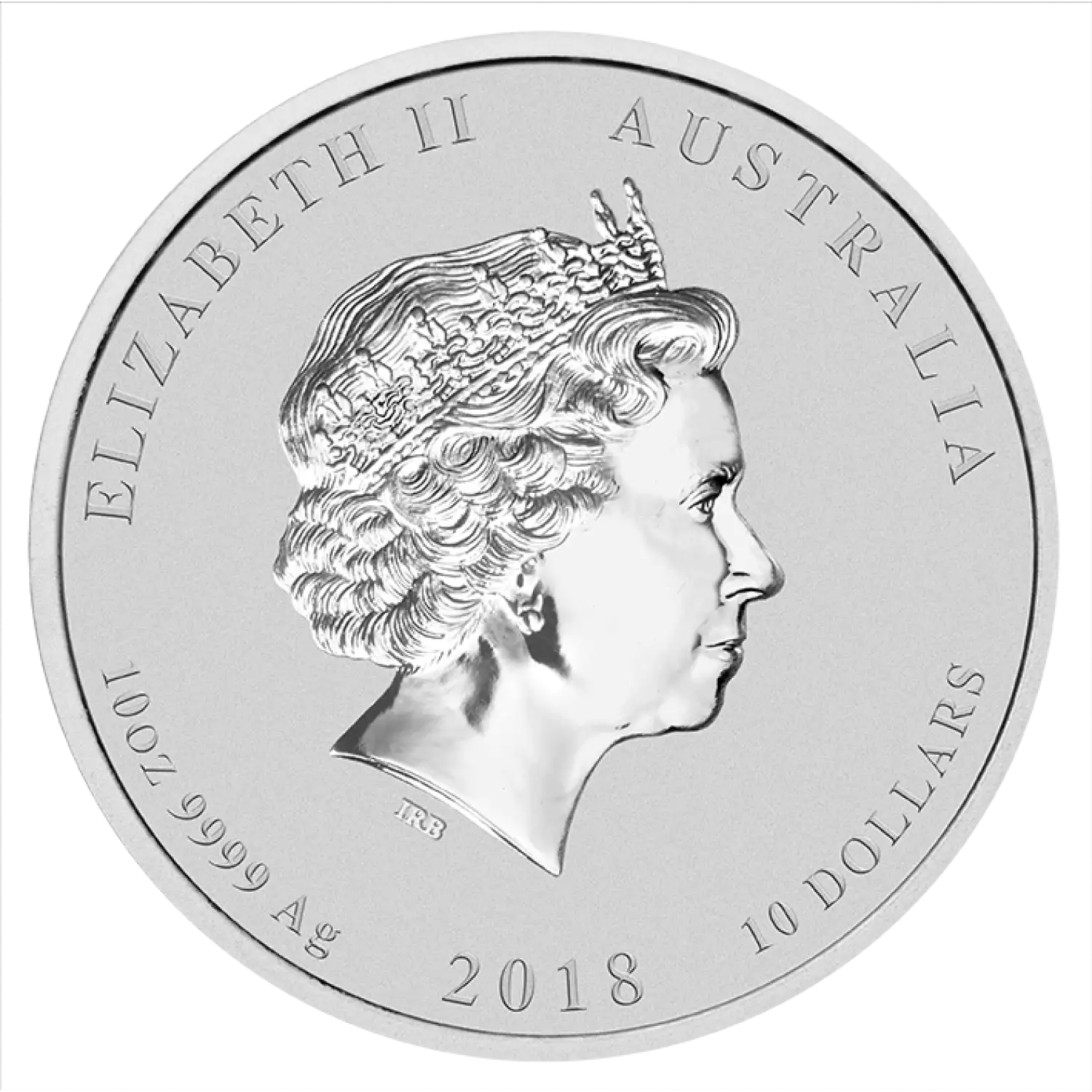 The 2018 10 oz Australian Perth Mint Year of the Dog is the latest issue in the Lunar Series from well-known Perth Mint featuring the "Year of the Dog" design. These coins bear a face value of 10 Australian Dollars and are backed by the Federal Government of Australia.The most popular sizes when you buy silver are 1oz, 10oz, and 100oz. Many other sizes exist but those silver bar or silver round sizes are not as popular.
