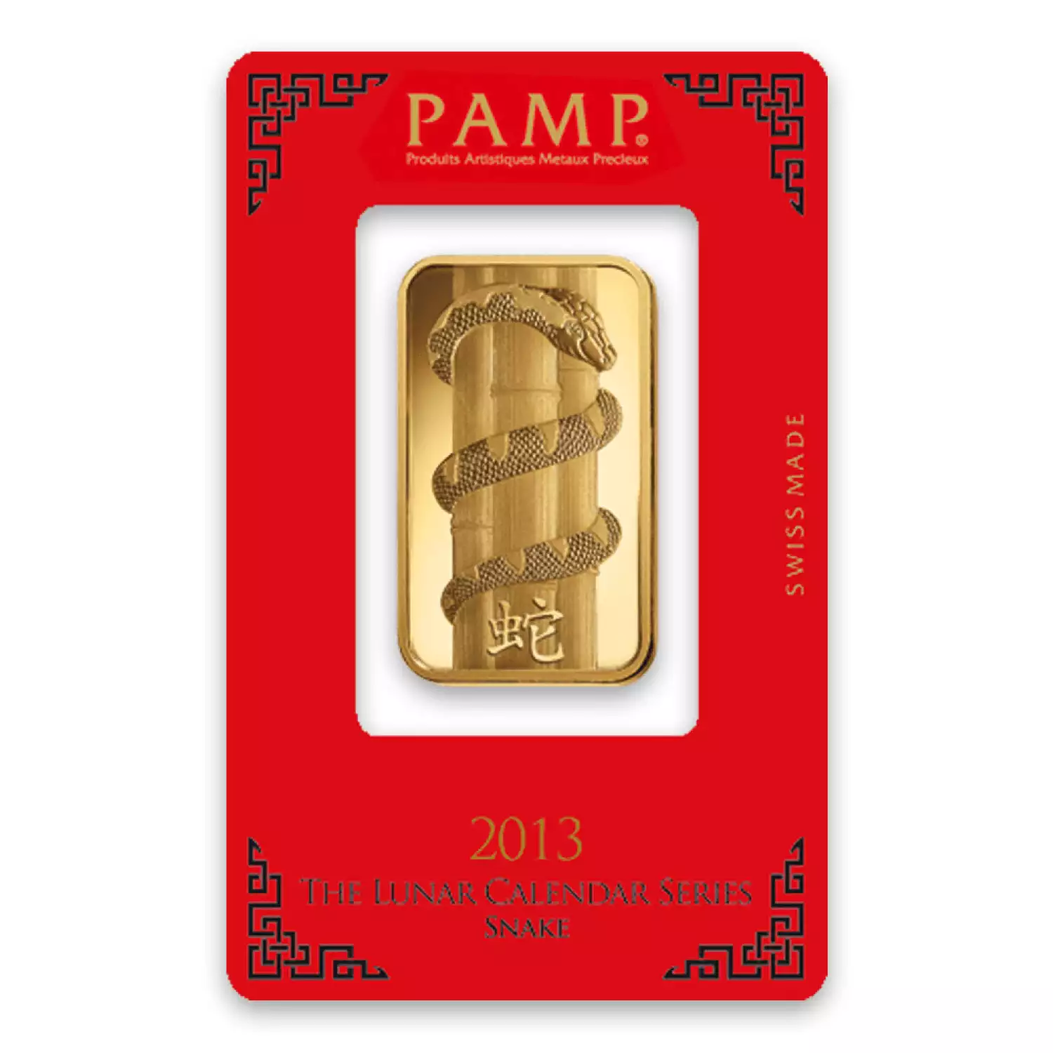 PAMP is the world-renowned producer of precious metals bars. The 1oz PAMP Gold Bar - Lunar Snake is manufactured in Switzerland and is composed of 1 oz of .9999 pure gold.