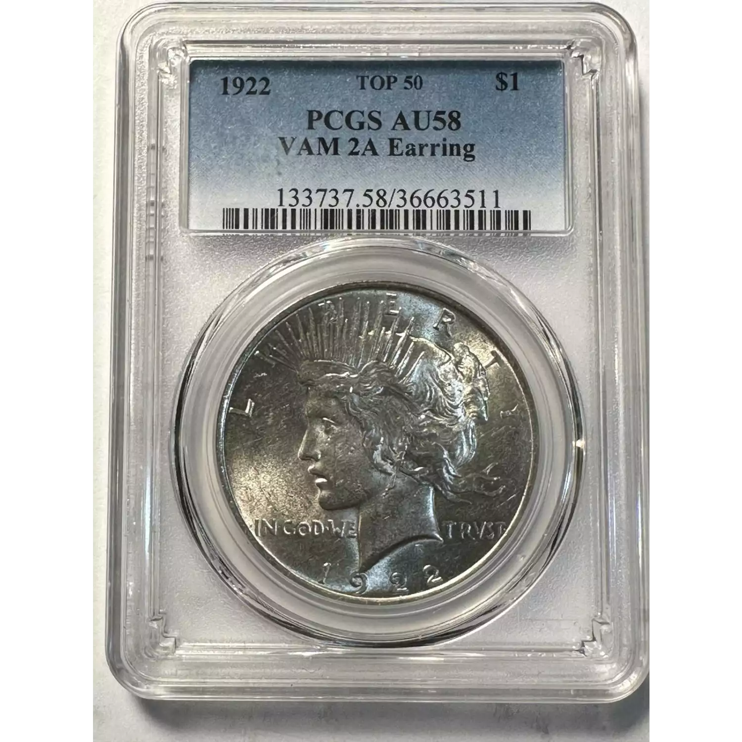 1922 Peace Dollar PCGS AU-58 VAM 2A - Earring - Top 50