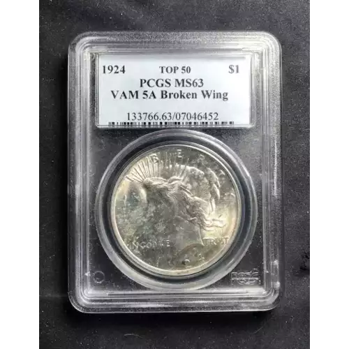 1924 Peace Dollar PCGS MS-63 VAM 5A - Broken Wing - Top 50