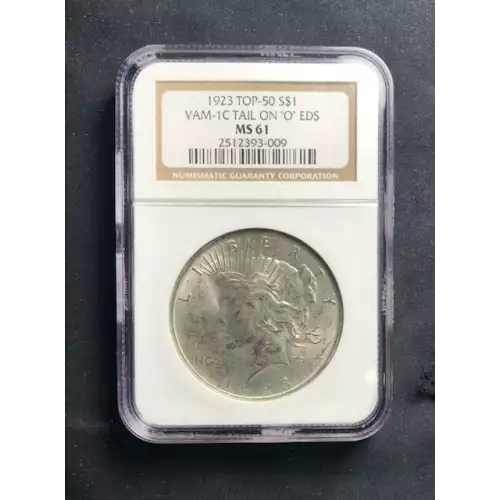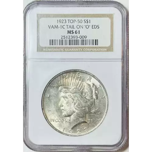 1923 Peace Dollar NGC MS-61 VAM-1C TAIL ON "O" EDS