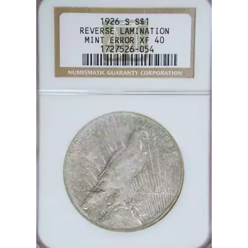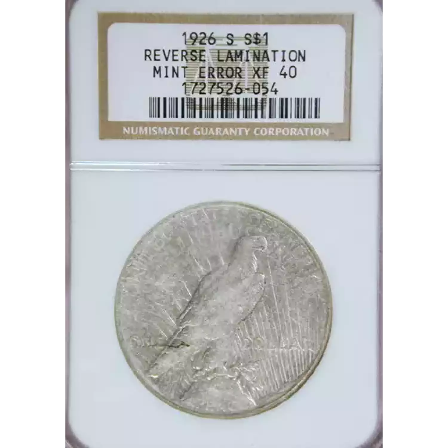 1926-S Peace Dollar NGC XF-40 REVERSE LAMINATION MINT ERROR