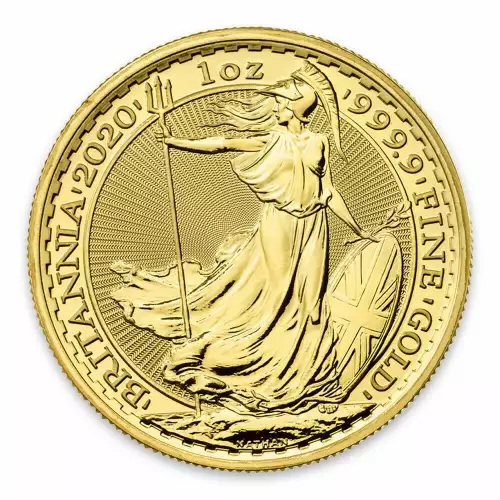 The British Gold Britannia continues to provide beauty and reliability. The 1 oz 2020 British Gold Britannia is one of the most popular investment coins in the world. This stunning gold coin contains 1 troy ounce of .9999 fine gold. The obverse pictures Queen Elizabeth II while the reverse is showing the design of Philip Nathan, picturing the country as a feminine figure.