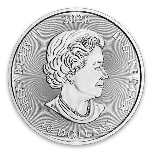 The 2020 1 oz Canadian Silver Maple Leaf is one of the most popular silver coins in the world. These beautiful silver coins are backed by the Canadian government and contain a silver purity of .9999. The obverse of the coin features the likeness of Queen Elizabeth II and the reverse displays one of the Canada's most popular symbols, the maple leaf and weight and purity of the Silver coin. Silver Maple Leaf coins now bear a laser inscribed micro Maple Leaf with the last two digits of the year inside that laser inscription. This is called "bullion DNA" by the Canadian Mint as each coin's laser inscription as t micro level is unique adding to the difficulty in counterfeiting Canadian silver bullion coins. Silver bars and silver coins may tend to tarnish over time depending upon the environment they are stored.