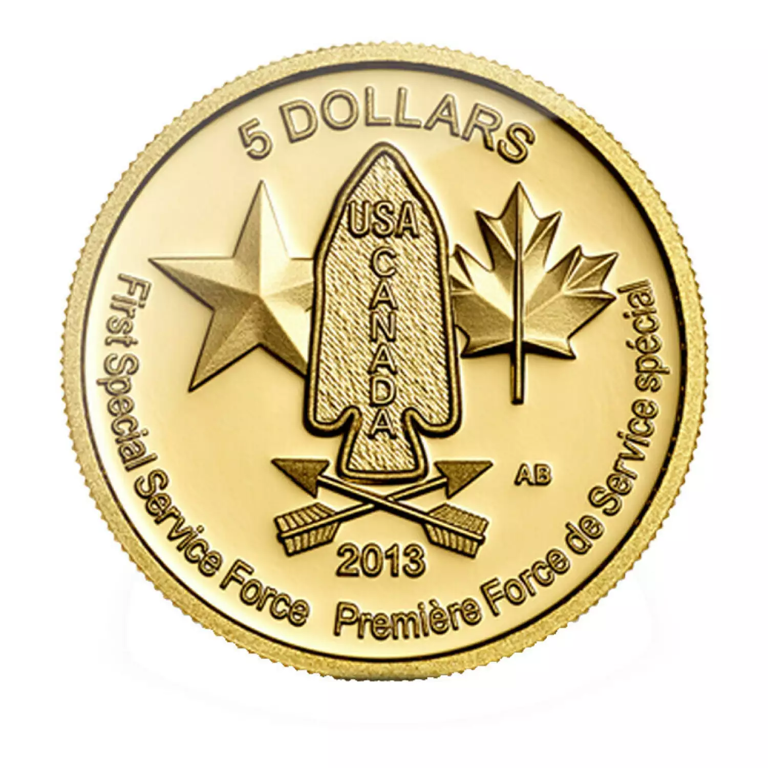 The 2013 1/10 oz Canadian Devil's Brigade Gold Coin coin contains 1/10 oz of .9999 fine Gold. These coins are a tribute for  the “Devil’s Brigade,” also known as 1st Special Service Force which was an American-Canadian comando unit which fearlessly fought during World War II.