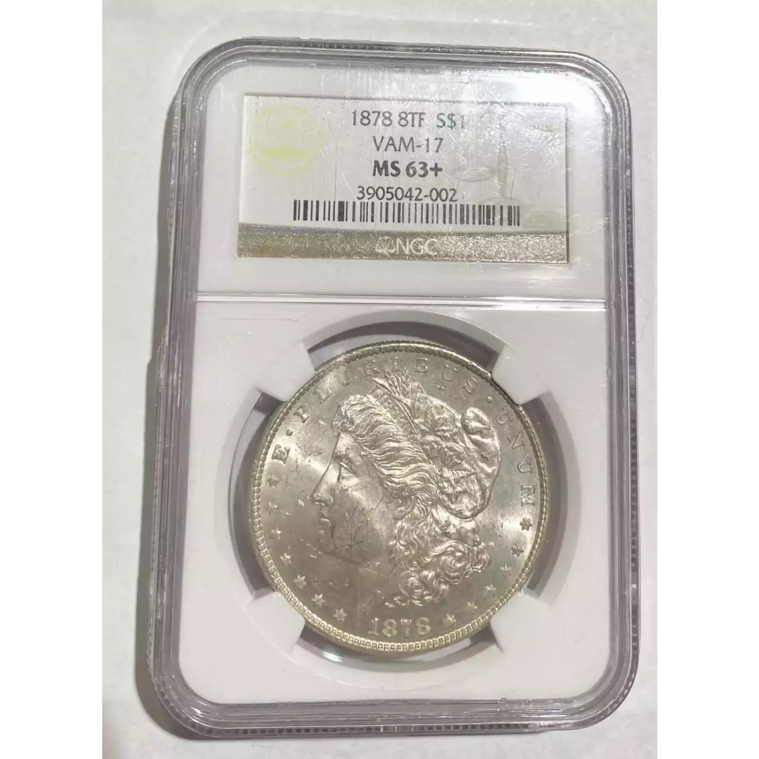 1878 Morgan Silver Dollar NGC MS-63+ 8TF VAM-17