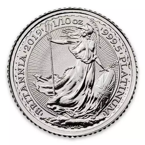 The 2019 1/10oz British Platinum Britannia is the newest annual release of the Britannia Platinum coins and is composed of 1/10 oz of 999.5 fine platinum. The obverse of the coin features Effigy of Her Majesty Queen Elizabeth II. The reverse depicts the image of Britannia, guardian of Britain. These striking platinum coins appeal to both investors and collectors.