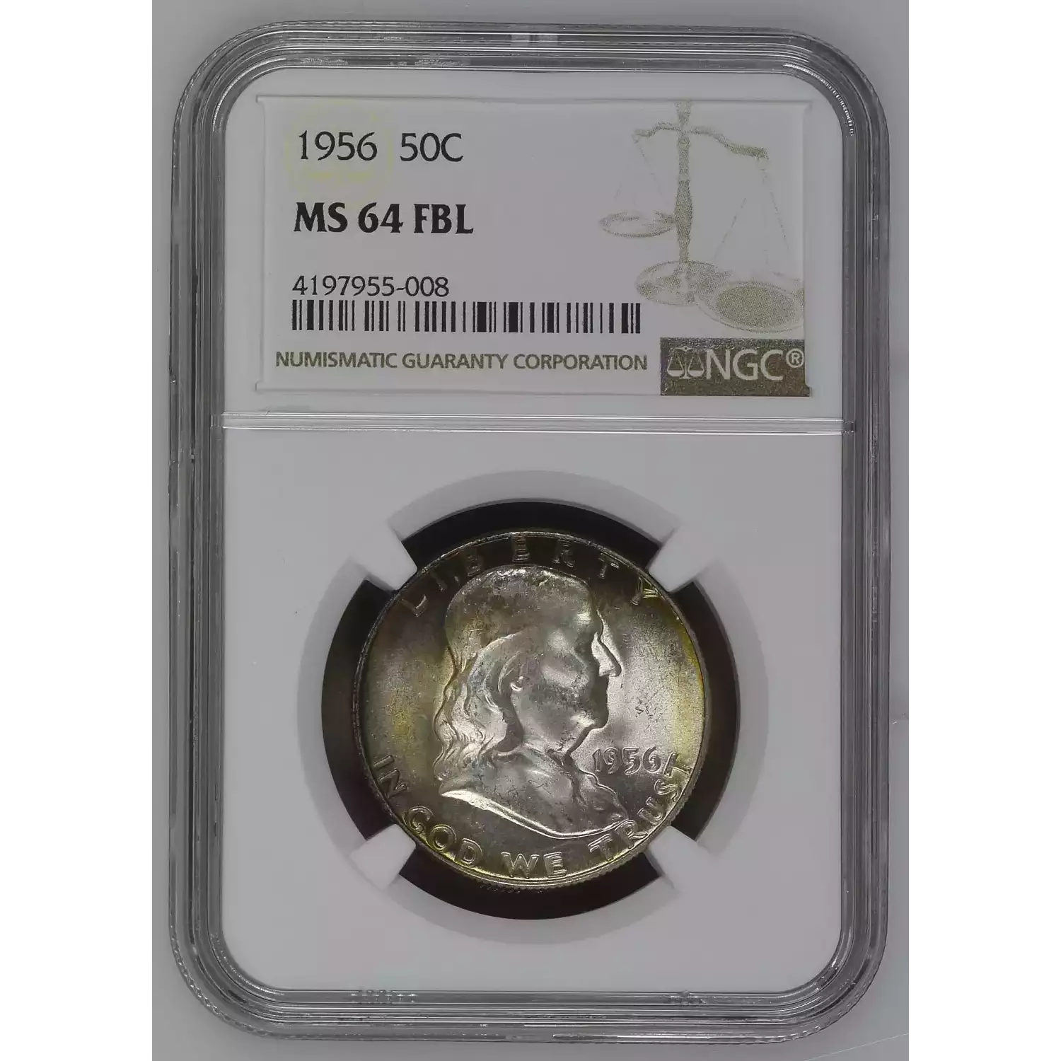 1956 Franklin Half Dollar NGC MS-64 FBL