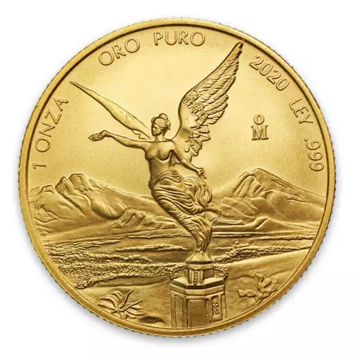 A winged Victoria of Mexican Independence Victory Column in front of a landscape with the volcanoes Popocat’petl and Iztaccihuatl graces the front, while the reverse contains the coat of arms of Mexico surrounded by historical mexican coats of arms. The Mexican Libertad design has changed over the years. Some investors refer to this Mexican gold coin as the Mexican Onza while others call it the Mexican Libertad. They are one in the same coin.