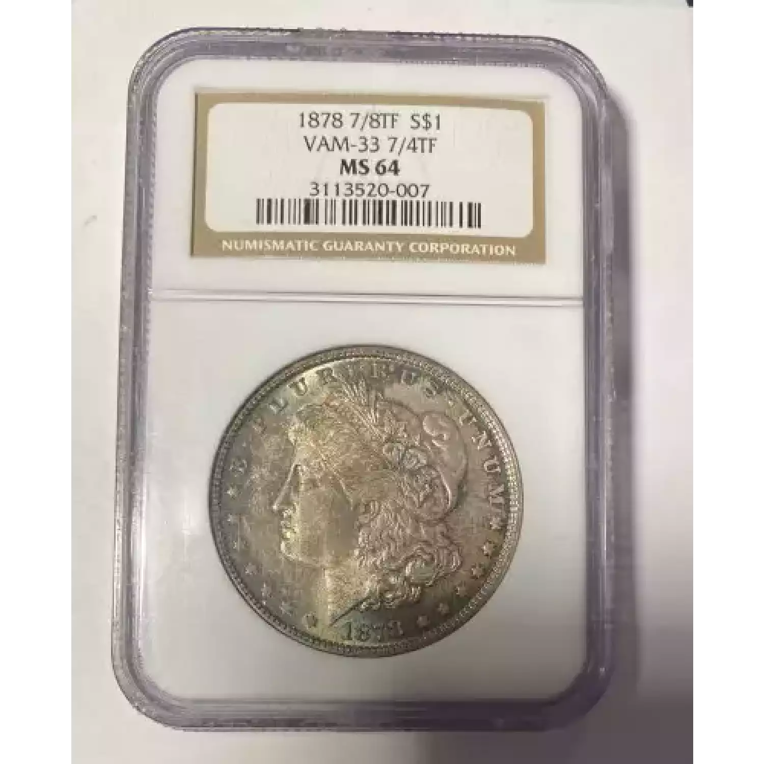 1878 Morgan Silver Dollar NGC MS-64 7/8TF VAM-33 7/4TF