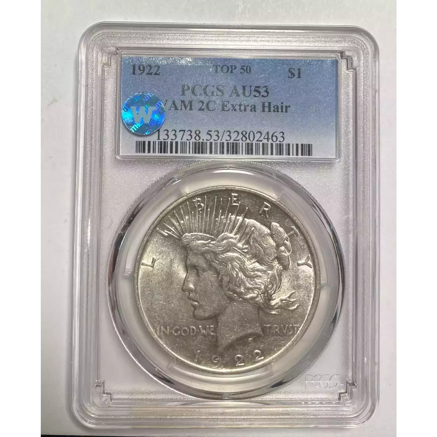1922 Peace Dollar PCGS AU-53 VAM 2C Sight White