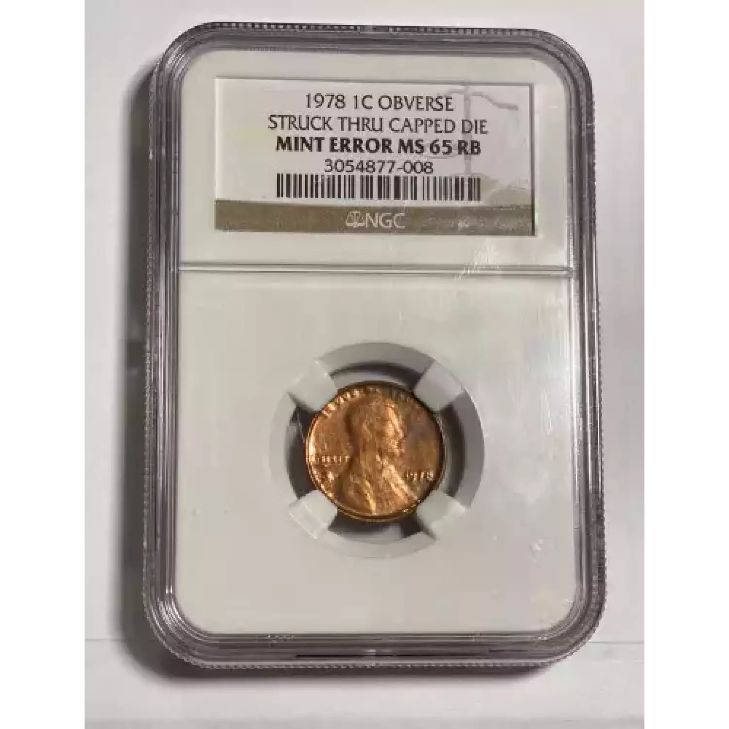 1978-p Small Cents Lincoln, Memorial Reverse NGC MS-65 RB STRUCK THRU CAPPED DIE