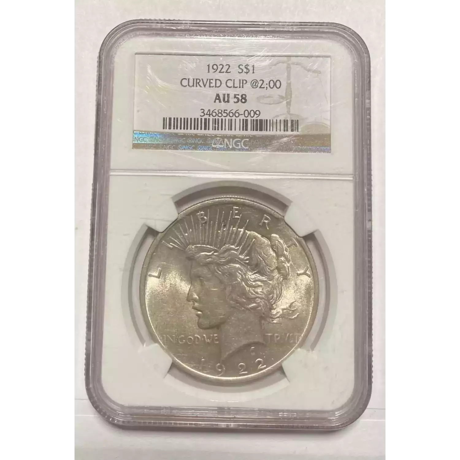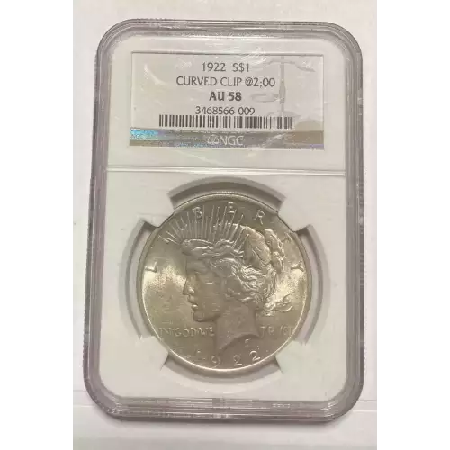 1922-p Peace Dollar NGC AU-58 1922 CURVED CLIP @2;00