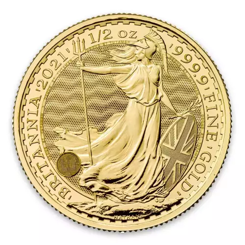 The British Gold Britannia continues to provide beauty and reliability. The 2021 1/2oz British Gold Britannia is one of the most popular investment coins in the world. Each 2021 1/2oz British Gold Britannia contains 0.5 troy ounce of .9999 fine gold. The reverse, designed by Philip Nathan has never changed since the first Britannia bullion coin in 1987. The Britannia has been a symbol through out the history and it’s first appeareance on the Roman coins is dating back over 2000 years ago.