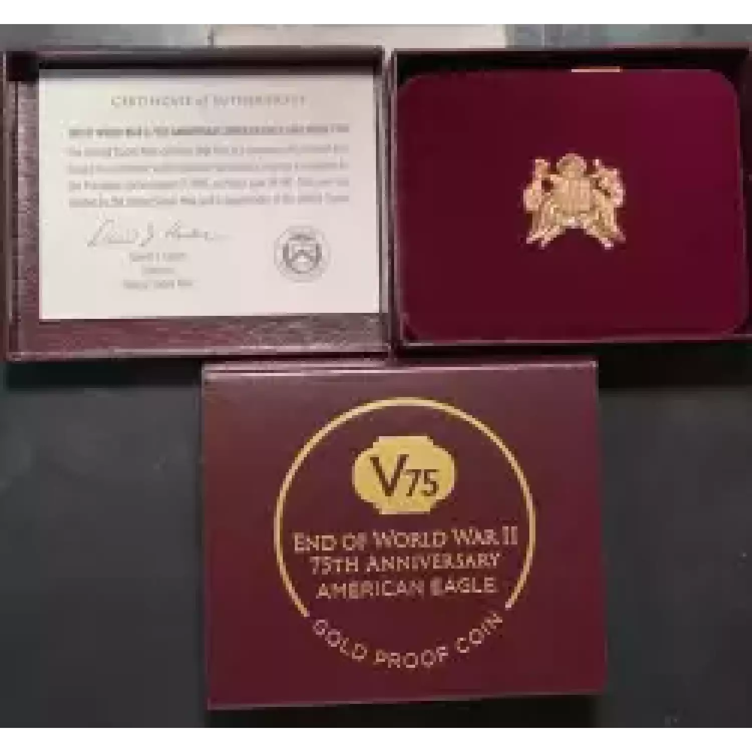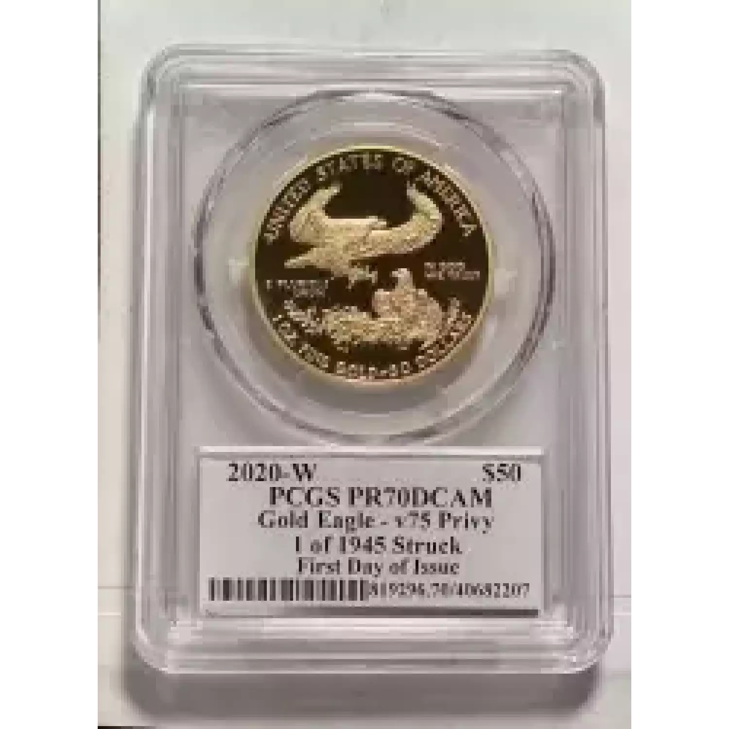 2020-W $50 Gold Eagle - v75 Privy 1 of 1945 Struck First Day of Issue, DCAM