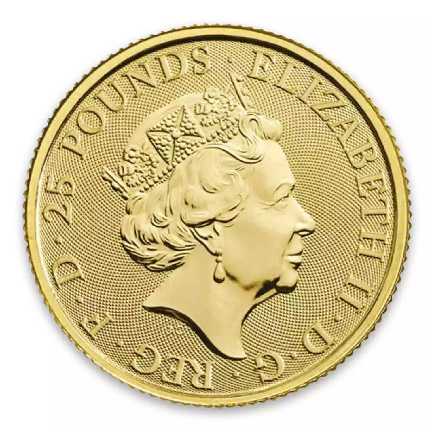 The 1/4oz 2020 Britain Queen's Beasts: The Horse of Hanover is the first release in an exciting new 10 coin series. The 2020 1/4oz Gold Britain Queen's Beast: The White Horse has a limited mintage and it's the eighth coin from this collection. The coin is designed by Jody Clark and while the observe depicts her Majesty, Queen Elizabeth II, the reverse is facing the White Horse of Hanover with the Royal Arms in front of it.